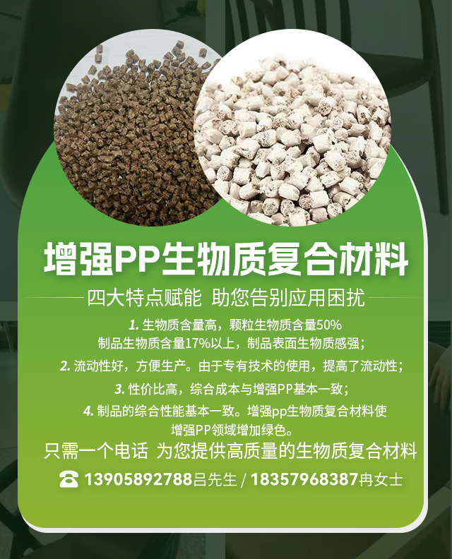 1、生物质含量在15%的普通料,它的含量稍高于国内广泛应用的7~10% 性能、质量及加工优势非常明显,可重复利用,性价比也较为突出
